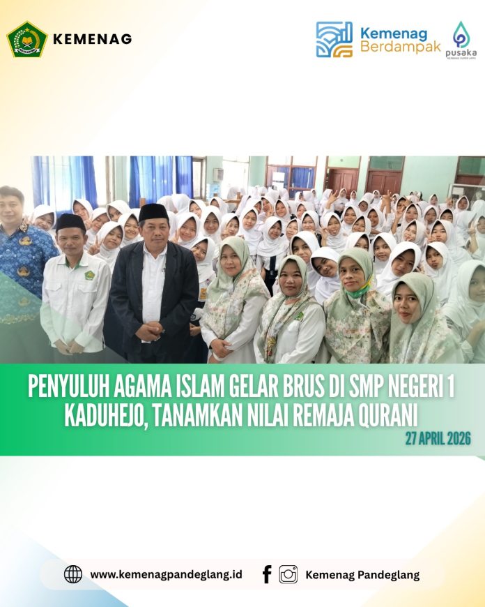 Pandeglang (Kemenag) – Penyuluh Agama Islam melaksanakan kegiatan Bimbingan Remaja Usia Sekolah (BRUS) pada Senin (27/04/2026) di SMP Negeri 1 Kaduhejo. Kegiatan ini bertujuan membina karakter dan akhlak remaja agar tumbuh menjadi generasi yang beriman, berakhlak mulia, serta bertanggung jawab.
